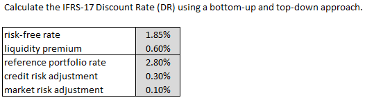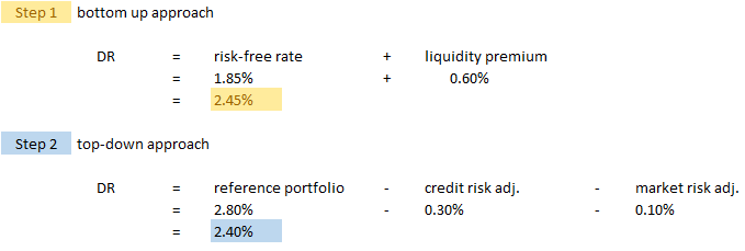 The reason this is called a "combined approach" is that it uses parts of both the top-down and bottom-up approaches. You start with a reference portfolio (that's the top-down approach) but you don't make credit or market risk adjustments to it. Instead, you use this reference portfolio only in calculating the LLP. Once you have the LLP, you go back to the bottom-up approach and add the LLP to the risk-free rate to get the final selected discount rate. Does that make sense? Ian-the-Intern is now curled up crying in the fetal position. :-(