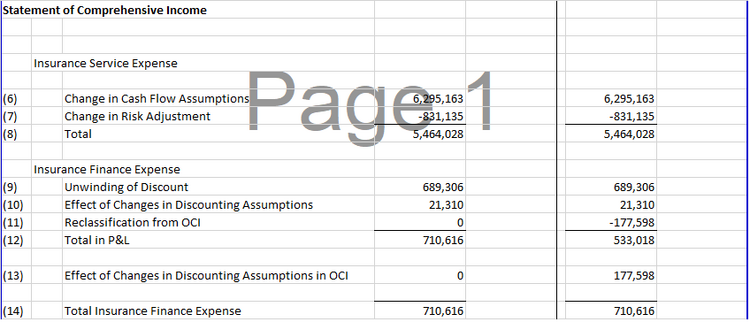 - income statement calculations including insurance finance expenses (there's a general discussion of this part of the calculation further down)