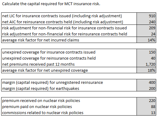 Note: The MCT calculation for capital required due to operational risk is the same as in the pre-IFRS 17 version of the MCT reading.