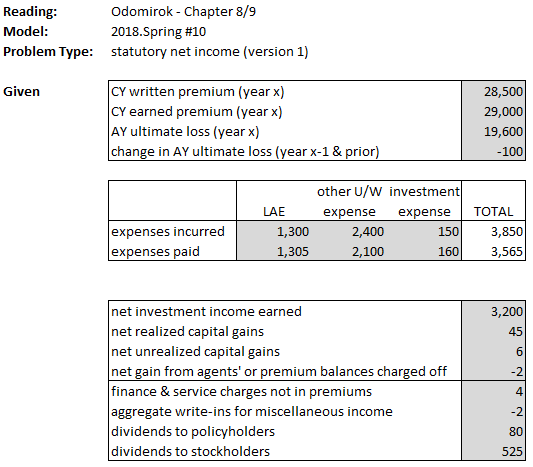 There is another old problem that asks you to calculate statutory net income but it's harder. It involves the concept of policyholder's surplus. It will make more sense once we've covered other problems that specifically ask you to calculate policyholder's surplus. Here's the link if you want to take a quick look but don't worry if you don't know how to solve it yet: