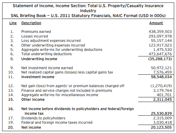 - There are 3 types of income: U/W income, investment income, other income